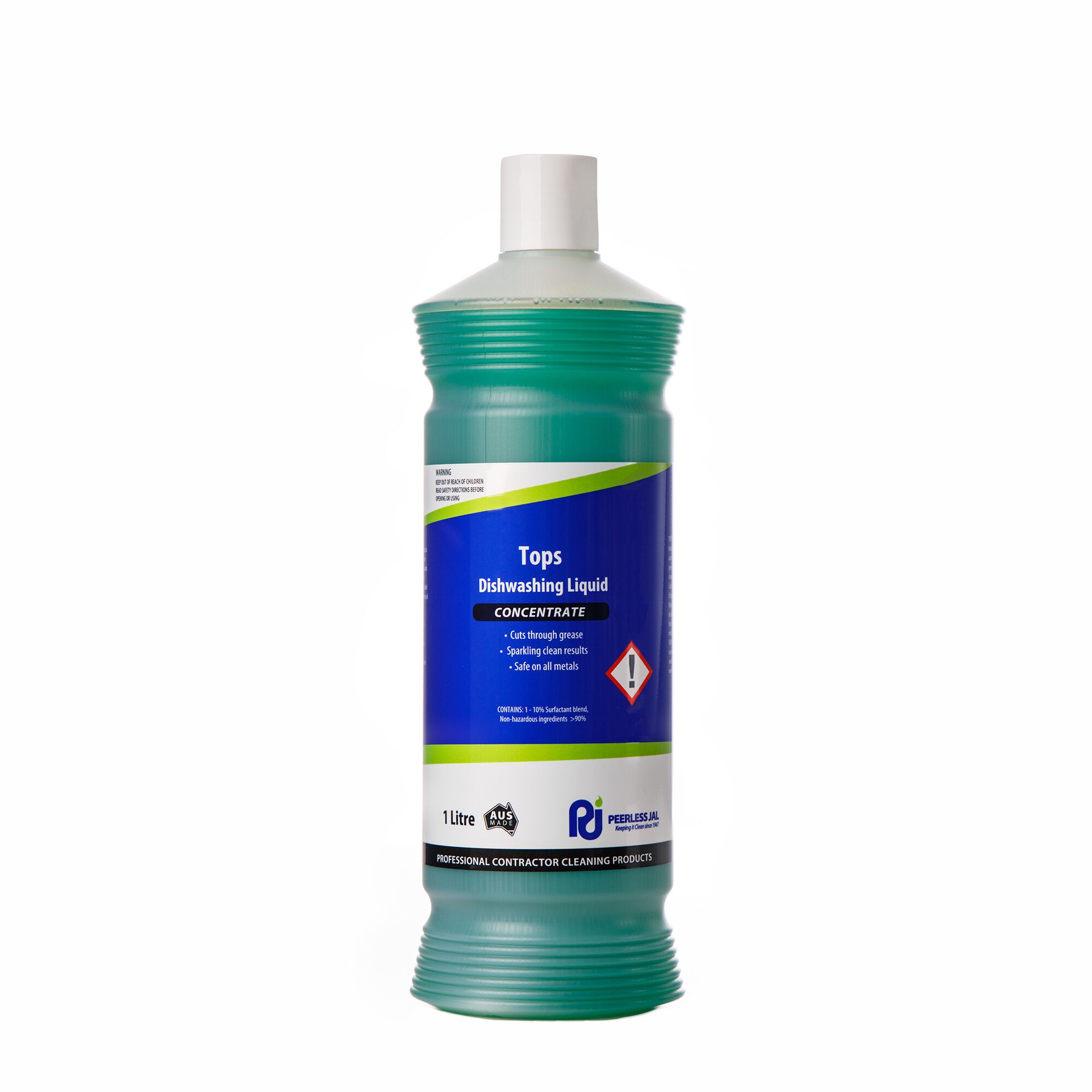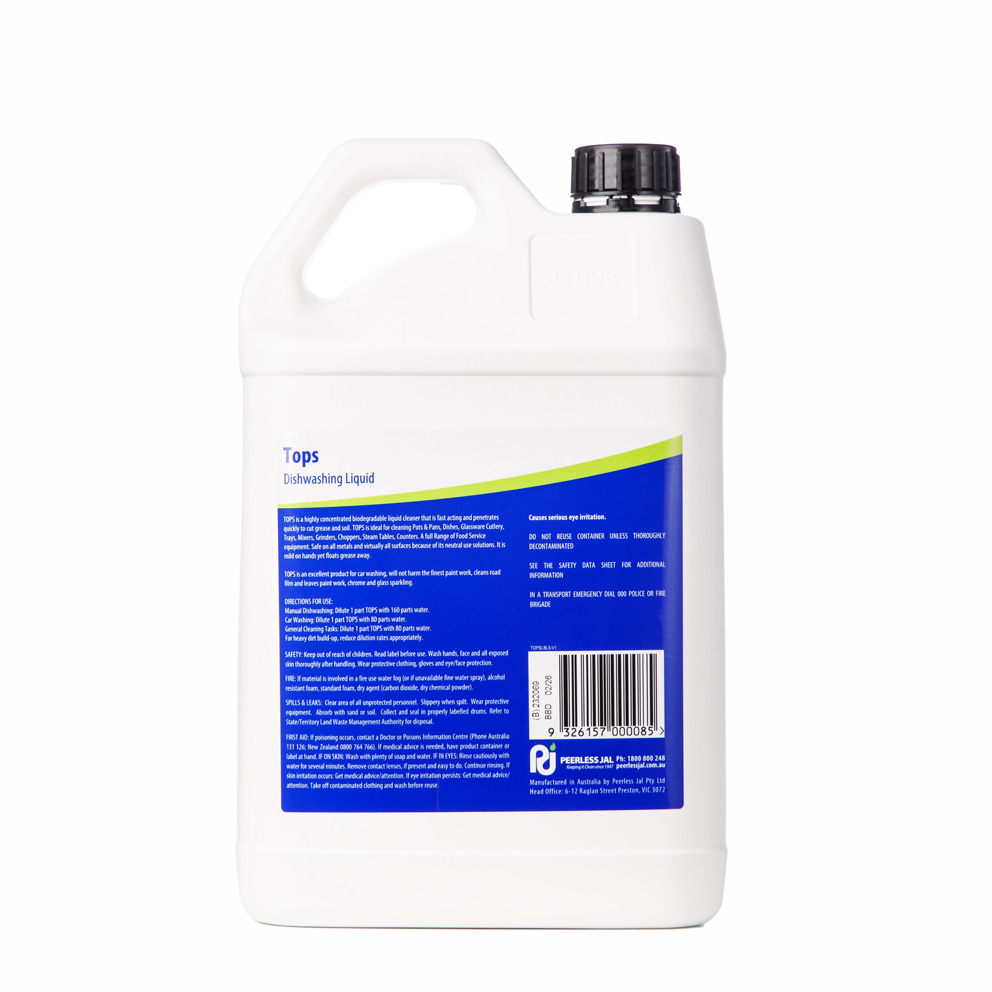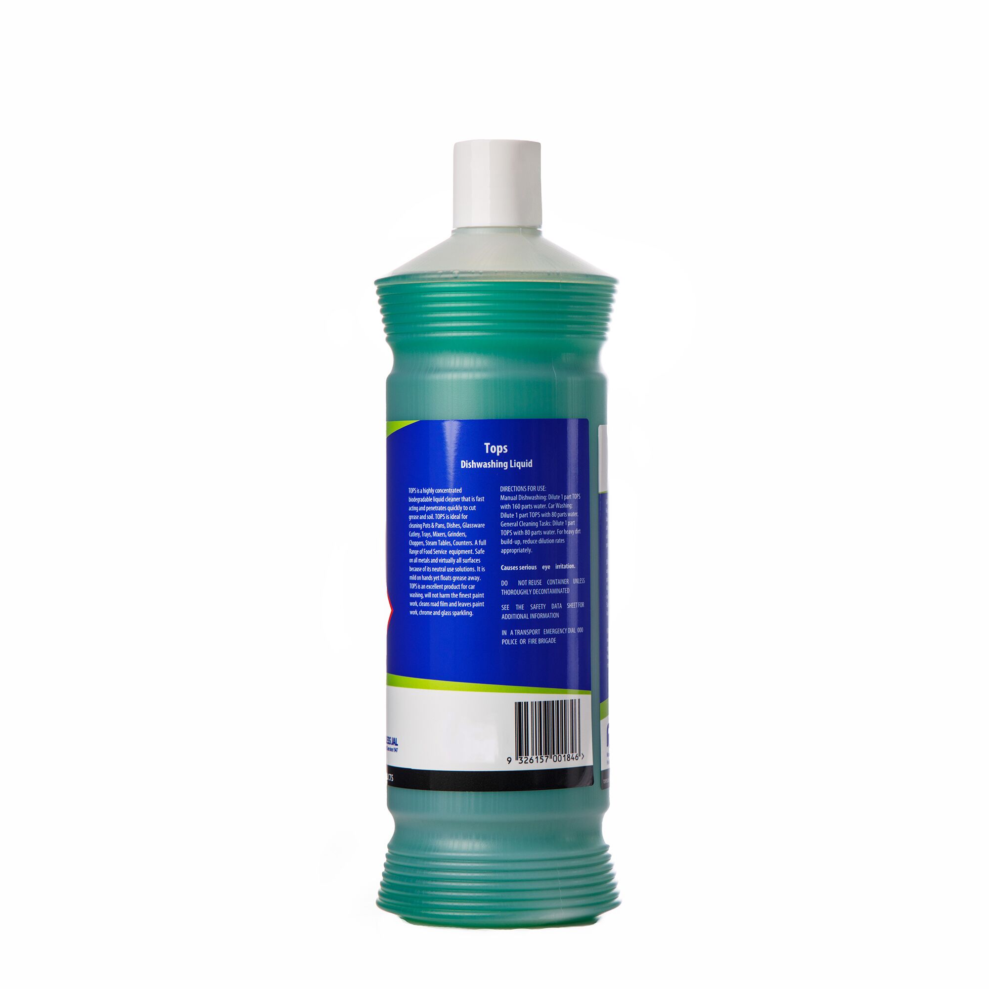 Tops is a highly concentrated biodegradable commercial dishwashing liquid cleaner that is fast-acting and penetrates quickly to cut grease and soil. Tops is ideal for cleaning pots and pans, dishes, glassware, cutlery, trays, mixers, grinders, choppers, steam tables and counters.