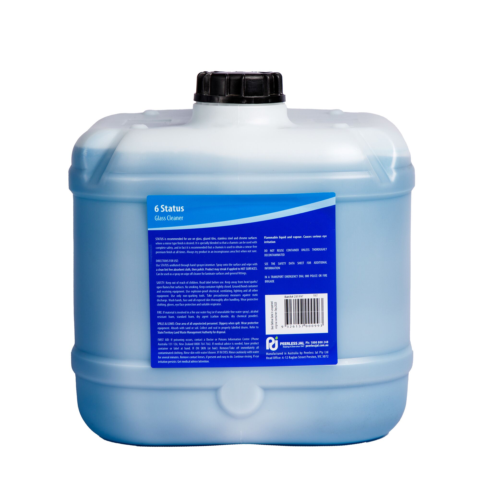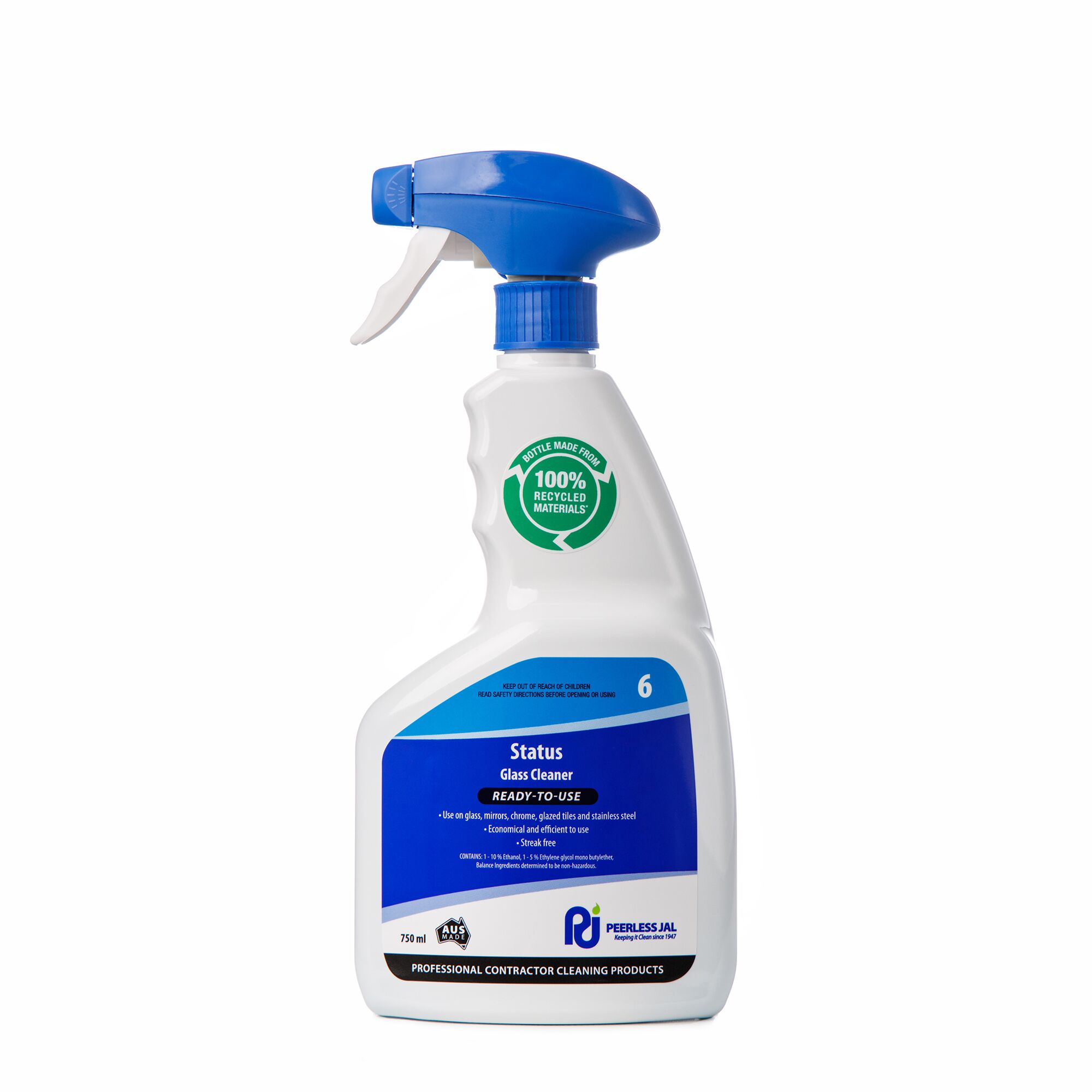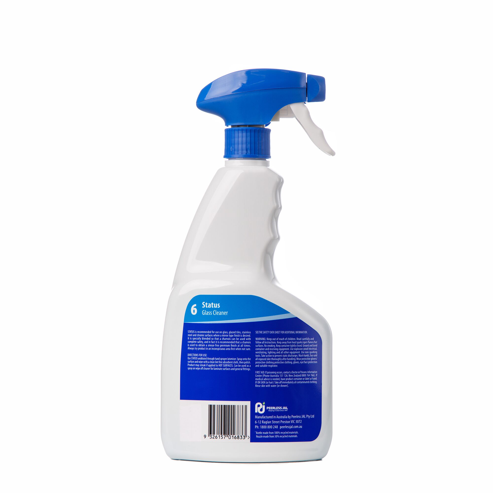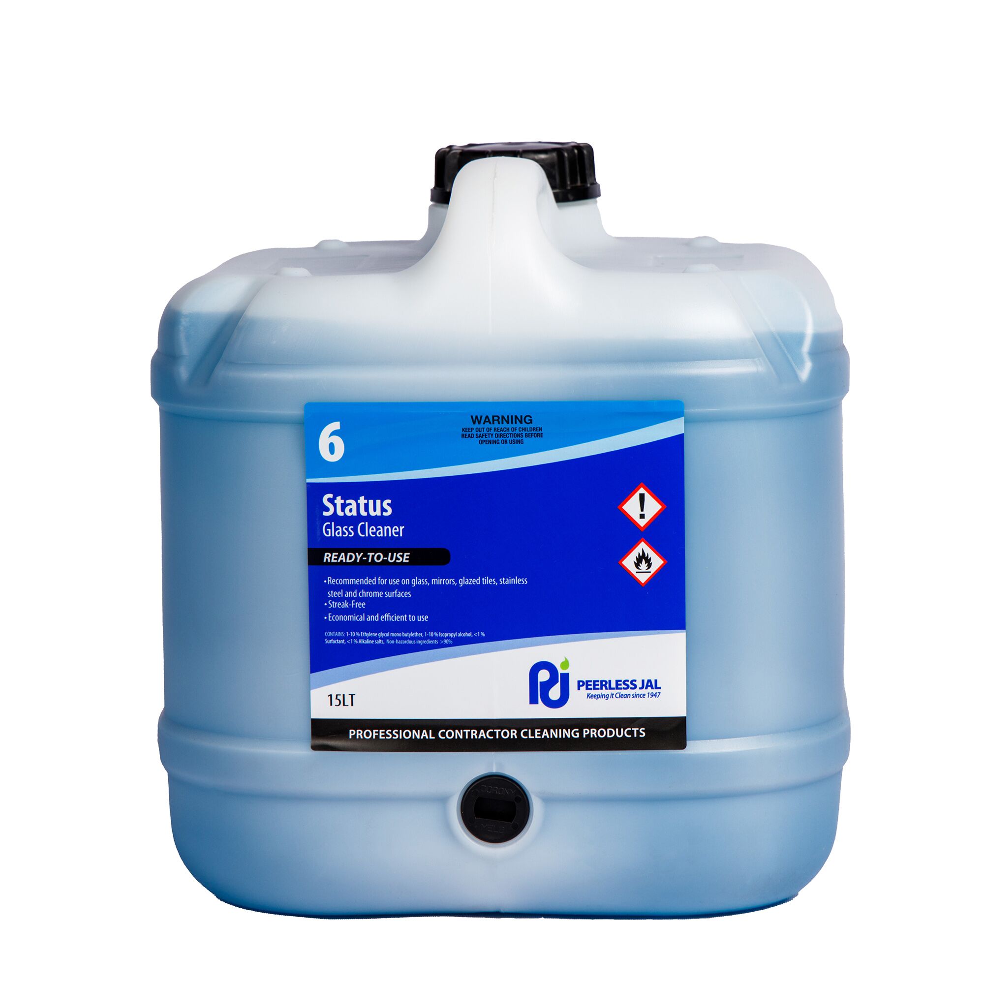 Status is a solvent-based window cleaner designed for easy application through all plastic atomisers. It’s recommended for use on glass, glazed tiles, stainless steel and chrome surfaces where a mirror type finish is desired.