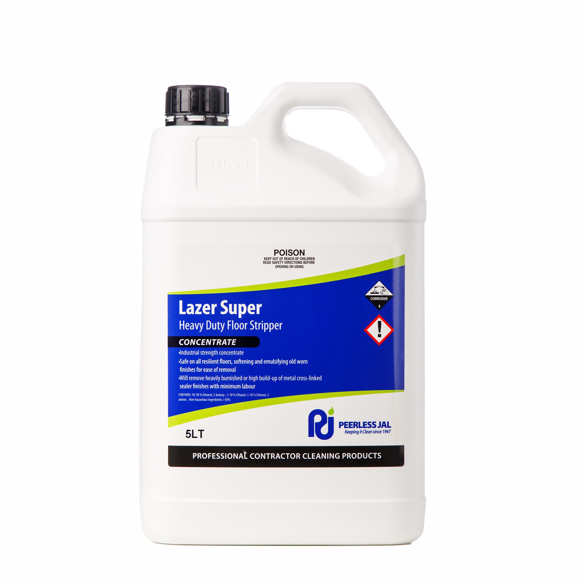 Lazer Super is a heavy-duty floor stripper formulated to remove heavily burnished or high build-ups of metal crosslinked sealer finishes with minimum labour. Lazer Super is safe for use on all resilient floors and quickly softens and emulsifies old worn and discoloured finishes for ease of removal.